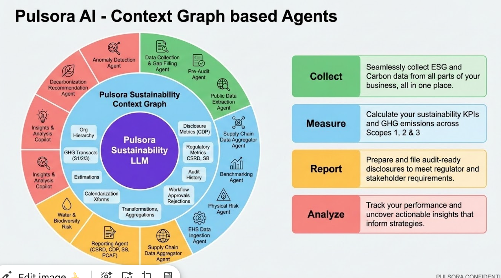 The context graph surrounds the entirety of Pulsora's sustainability LLM to give functions direct business context
